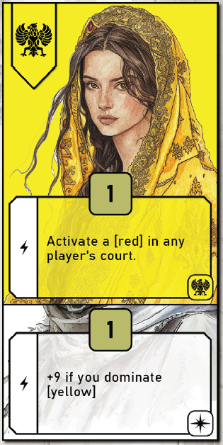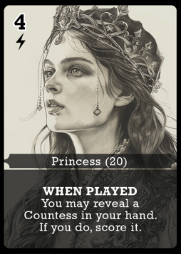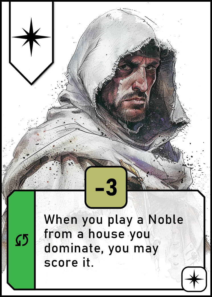 Each card now belongs to one six royal ‘houses’ - these replaced the need for words such as “Viscount” or “Princess” and allowed me to remove them from the game.