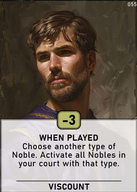 The cards Noble type - in this instance, Viscount, which was only represented by the text at the bottom of the card.
